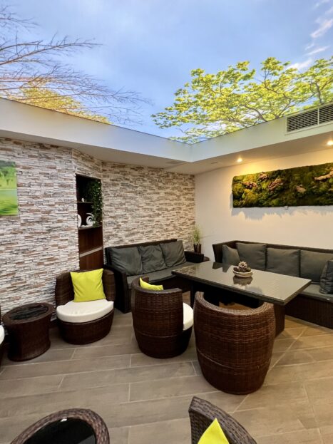 Právě zde je limitovaná kapacita maximálně 14 osob, vždy zde tedy máte zaručenou zcela privátní atmosféru. Využít tu můžete saunu, Kneippův chodník, velkou vířivku, příjemnou odpočívárnu, otužilci si mohou zaplavat ve velkém ochlazovacím bazénu…