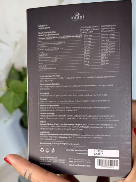 Já jej mám díky paní Radaně Švrčulové (www.radanost.cz), která je zástupkyní IMUNI. Přes stránky Radany – https://backoffice.imuni.eu/cs/affiliate/Rady07 – si můžete kolagen objednat, samozřejmě i jakékoliv další produkty od IMUNI (mimo jiné i kosmetiku, se kterou vás seznámím později).
