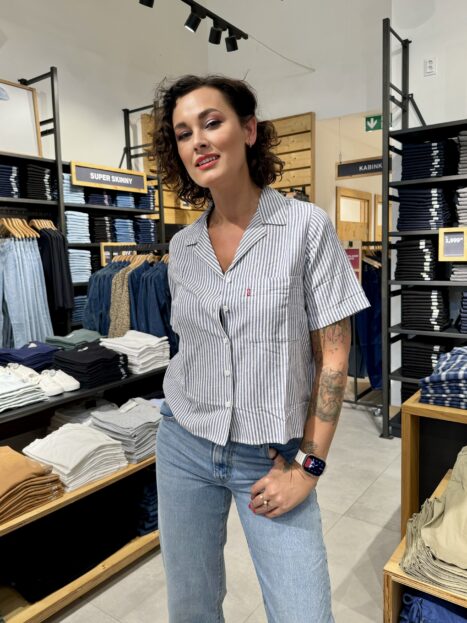 Mimo džíny je v obchodě Levis pak široká škála další denimové módy. Koupíte tu džínové bundy, košile, šaty a nyní už i kraťasy! A nutno napsat, mají tu překrásné!