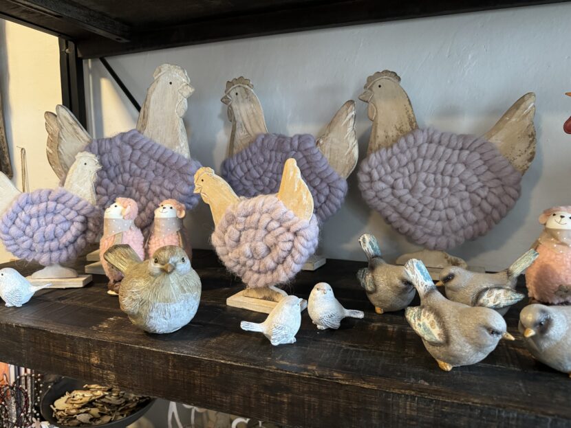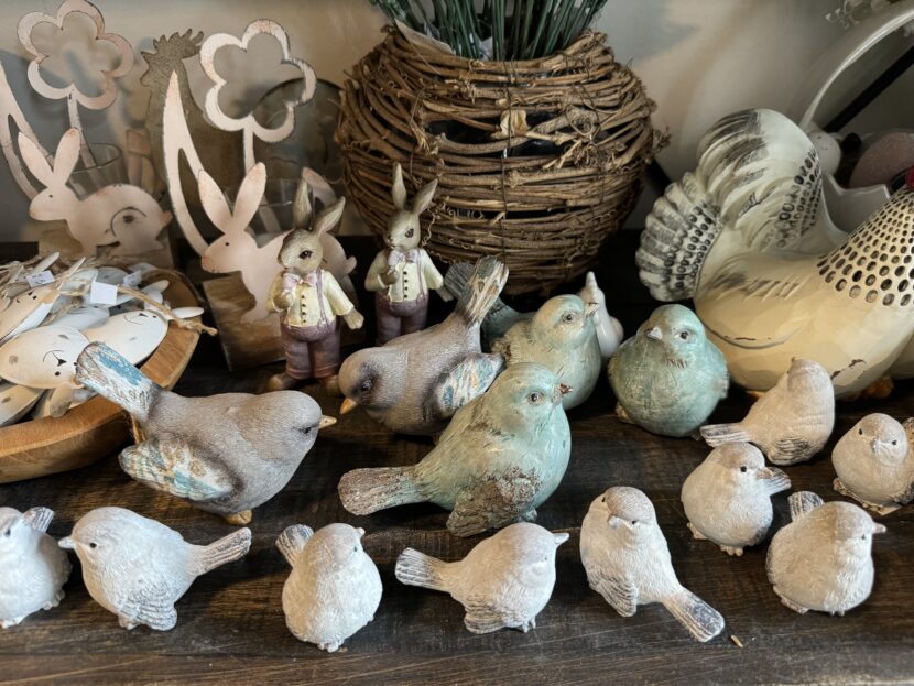 Pokud tedy hledáte opravdu jarní a hlavně, velikonoční dekorace – stavte se sem. Já vám vyfotila třeba tyto krásné ptáčky – v zajímavé kombinaci materiálů.