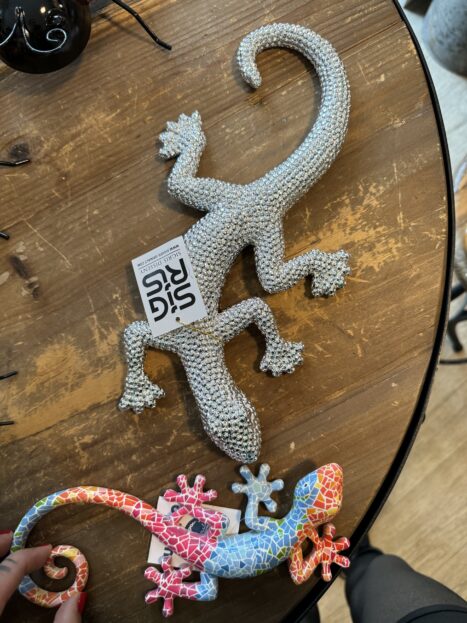 Mě tu nadchly i tyto dekorace ze Španělska – ještěrky – z různých materiálů.