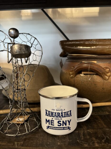 Lidé sem pak rádi chodí i pro sklo a porcelán. Ve stálé nabídce jsou skleničky na víno s vtipnými nápisy…