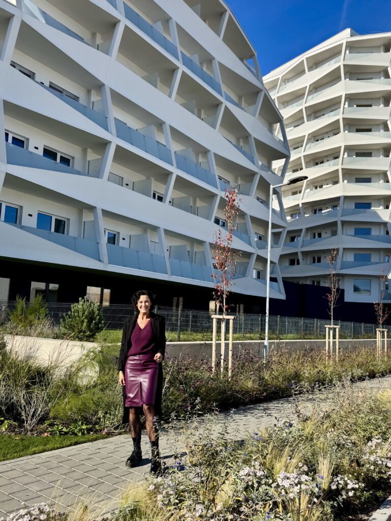 Ovšem, naprosto mě okouzlily i interiéry budov, doslova od otevření vchodových dveří! I atrium u výtahů je nádherné, zaujmou vás použité materiály, velkoformátové obklady na zemi i na zdech, zrcadla, květiny, osvětlení… nádhera!