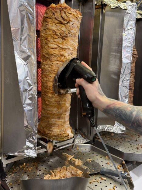Kebab tu mají z více druhů masa – kuřecí, hovězí a z vepřové krkovice. Maso berou od regionálních řeznictví, hlídají si kvalitu, maximální čerstvost.