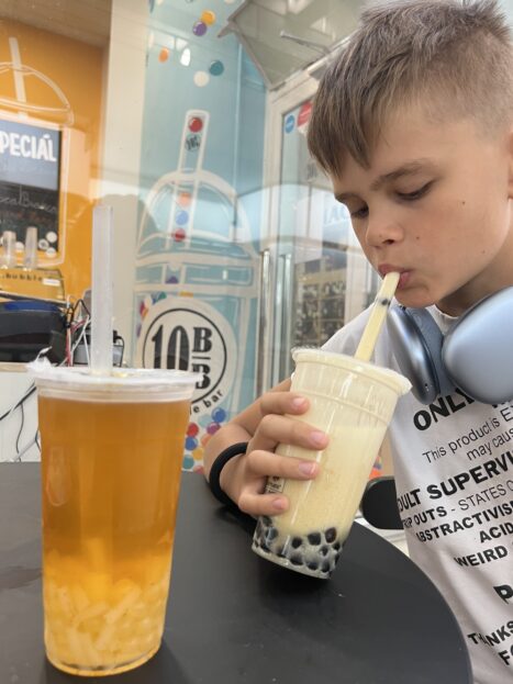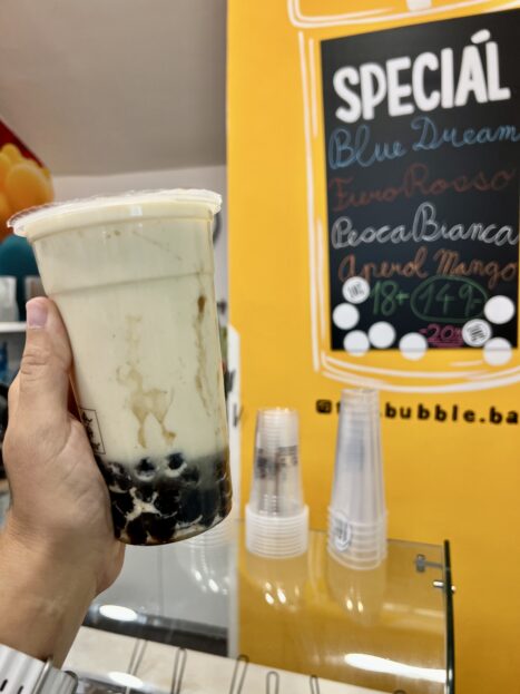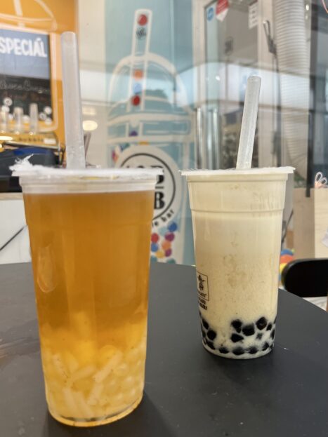 Oblíbené tu jsou také mléčné čaje, připravené z mléka, buď i s příměsí čaje, nebo bez, se sirupy a s kuličkami… Jsou také velmi dobré, pro milovníky mléčných drinků super volba!