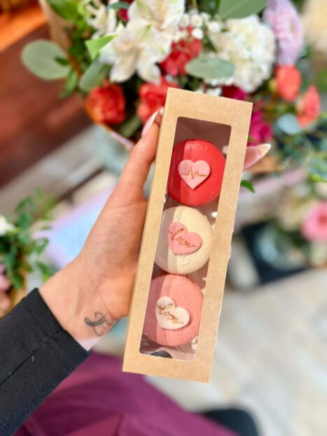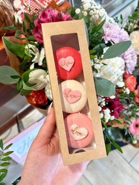 Dále si můžete objednat i krabičku Valentýnských markronek (3ks), nebude chybět i maximakronka – dortík s malinami i oblíbené makronky ve tvaru srdce, panna cotta, vše samozřejmě s valentýnskou tématikou.