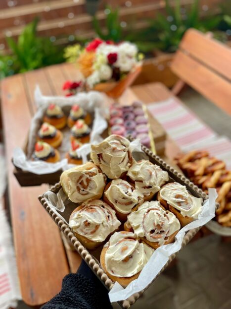 A připomínám, stále tu jsou každou středu úžasné moučníky – zde čerstvě upečené koláče, štrůdly, koblihy, skořicoví šneci, ořechové záviny a už tradičně také frgály.