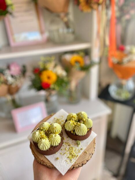 Zdejší cukrářka stále vymýšlí vynikající novinky, které zkrátka musíte ochutnat – například různé tartaletky, makronky, dubajské speciality, choux, pistáciové věnečky… Nové jsou i nejrůznější dortové řezy – Rafaello dort s mandlovými křupinkami a amaretem, ořechový dort s mascarpone, red velet, pomerančový dort, makový dort s višněmi…