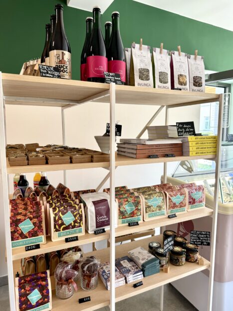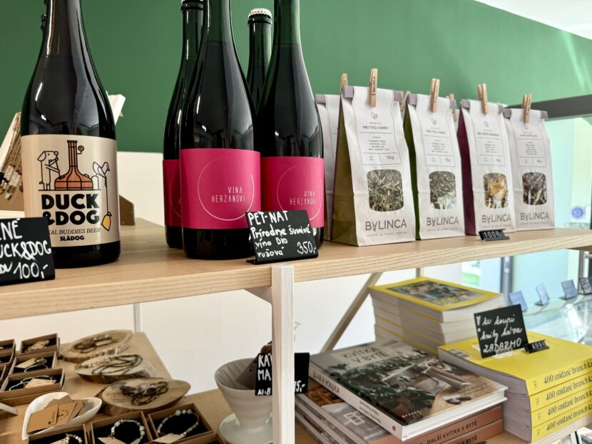 V nabídce produktů, které si pak můžete přímo zde koupit, najdete naturální BIO vína od Herzánových, řemeslné pivo Duck & Dog z Rajhradu, čokolády od Herůfka, čaje Bylinca…