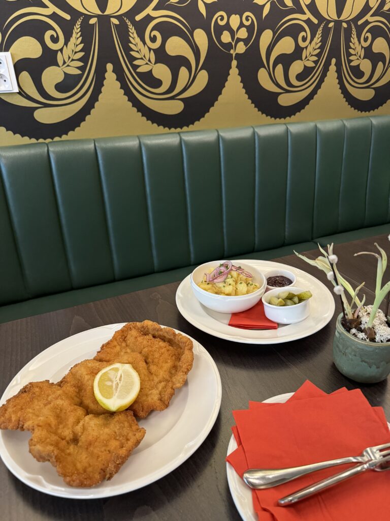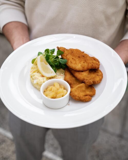 V nabídce restaurace pak najdete i další více i méně známé rakouské speciality, Backhendl salát, Tafelspitz, Germknödl, vývar s játrovým knedlíkem…