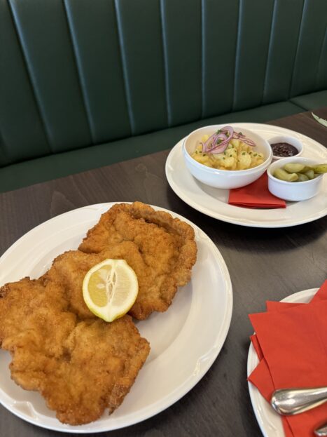 Ano, hlavním „lákadlem“ této restaurace je právě tradiční „wiener schnitzel“, vídeňský telecí řízek, na tento naklepaný, obalený ve strouhance z kaiserek, osmažený na másle. Jsem si téměř jistá, že jinde v Brně si ho v tomto pojetí vážně nedáte!
