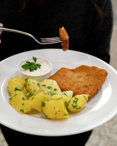 Zastavte se – ochutnat originální vídeňský řízek – je velký doslova jako „sloní ucho“, přes celý talíř, přesně, jak to má být. Je vynikající!