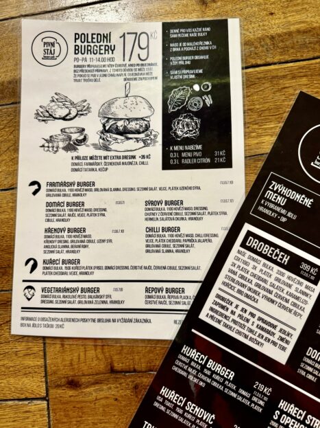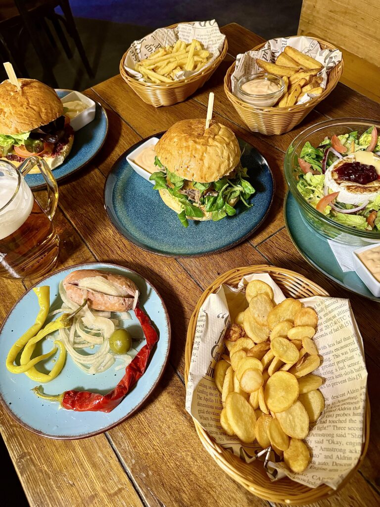 K pivu pak samozřejmě nesmí chybět i dobré jídlo! Nabídka jídel v jídelním lístku je rozmanitá, ochutnáte třeba domácí utopence, ovšem – nejvyhlášenější tu jsou burgery!