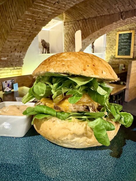 I ty jsou jedním z hlavních „lákadel“ Pivní stáje, burgery mají opravdu vyladěné, kvalitní a poctivé. Maso na burgery berou od lokálních dodavatelů, bulky si pečou sami, vlastní výroby jsou pak i různé omáčky, dresingy…