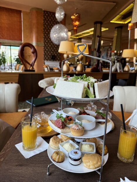 Další gastronomickou specialitou hotelu Savannah je pak podávání „Čaje o páté“ – v čase od 14. do 17. hodiny si můžete vychutnat výběr čajů, čerstvý džus, prosecco, kávu a k tomu se servírují také etažéry s delikatesami – slanými i sladkými!