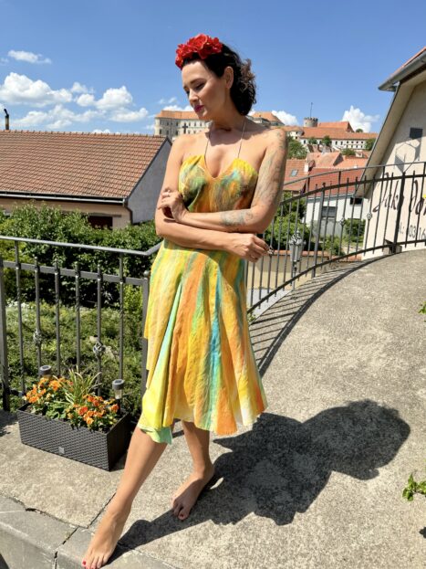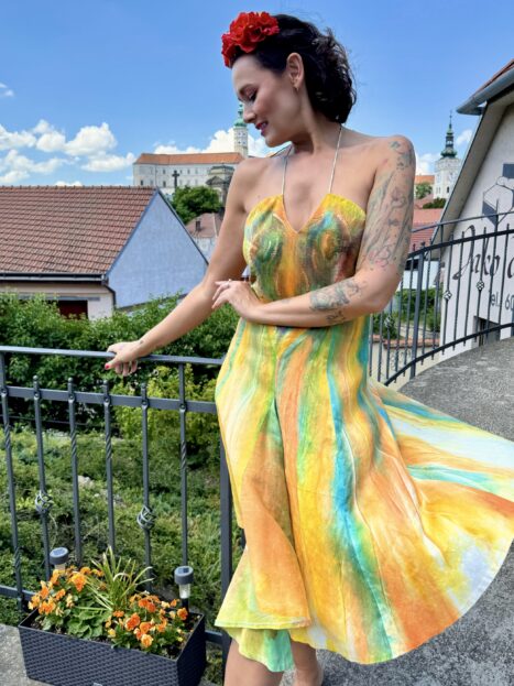 Každý kousek těchto šatů je tedy naprostým originálem, výjimečností – nestane se vám, že ve stejném modelu někdy někoho potkáte.