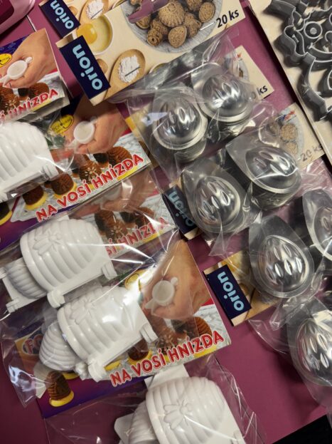 Můžete vybírat z mnoha typů a tvarů vykrajovátek, nechybí formičky na včelí úly a vosí hnízda, nebo pracny, koupíte tu i tuby, nebo sáčky na zdobení, jedlé vánoční dekorace…