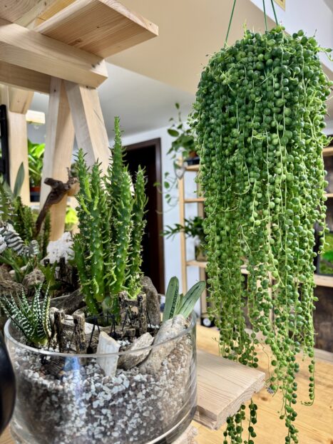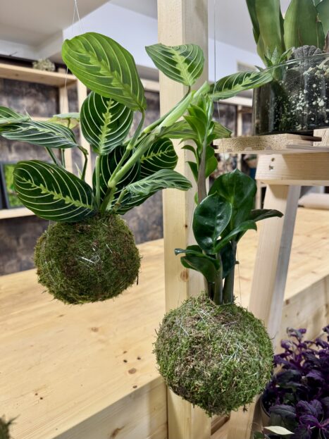 Určitě vás tu zaujmou také závěsné „kokedamy“ – což jsou rostliny pěstované dle japonského tradičního způsobu, v mechových obalech. Kokedamy stačí zavěsit a podle typu, velikosti a hlavně, podle potřeby zaléváte.