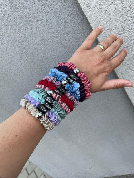 Nutností každé kudrnky jsou bezesporu hedvábné gumičky – jsou ručně šité, z pravého hedvábí. Gumičky netrhají a nelámou vlasy, můžete je nosit naprosto každý den!