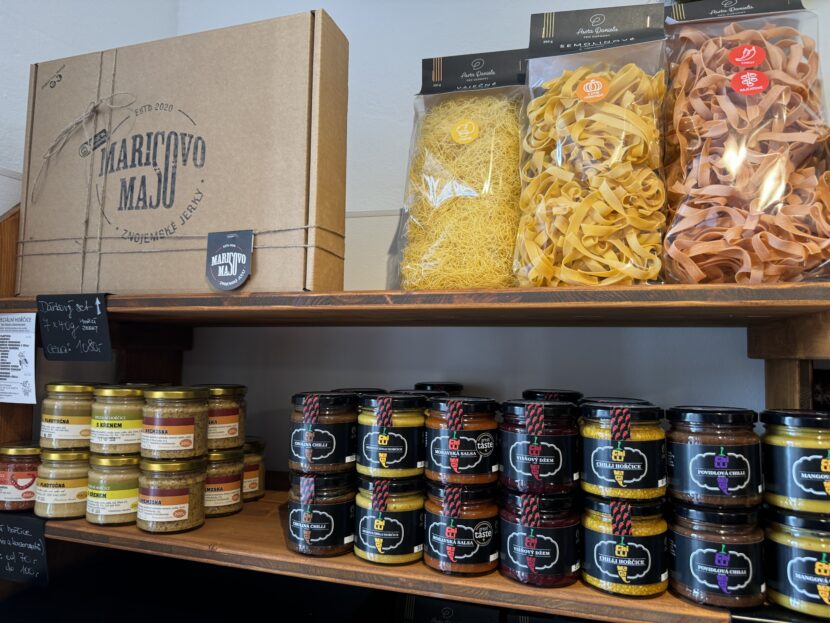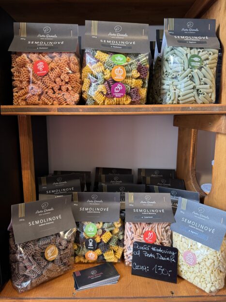 Mimo to, v obchůdku pak koupíte i zajímavý doplňkový sortiment, třeba semolinové těstoviny Pasta Daniela, domácí sýry, omáčky z chilli Chilly Maga, nebo výborná vína z vinařství Olejník.
