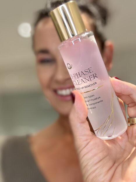 Na odličování – a to i voděodolného make-upu je vhodné použít 3 – Phase Cleaner. Je skvělý jak na pleť, tak i na oči – odstraňuje i voděodolnou řasenku, nebo oční linky. Co mě velmi potěšilo – nedráždí oči! Naopak má zklidňující efekt, vysoce hydratuje, snižuje zarudnutí.