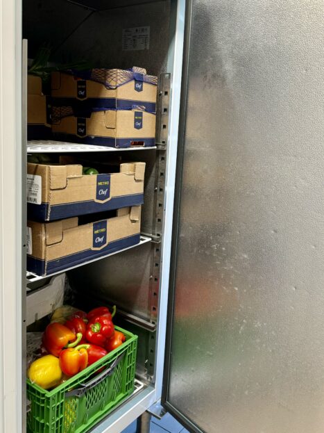 Co se pak surovin týká – suroviny mají v Tasty Box uskladněné ve skladovací místnosti, rozdělené samozřejmě dle hygienických předpisů. Zvláště maso, vejce, zelenina, suché potraviny…