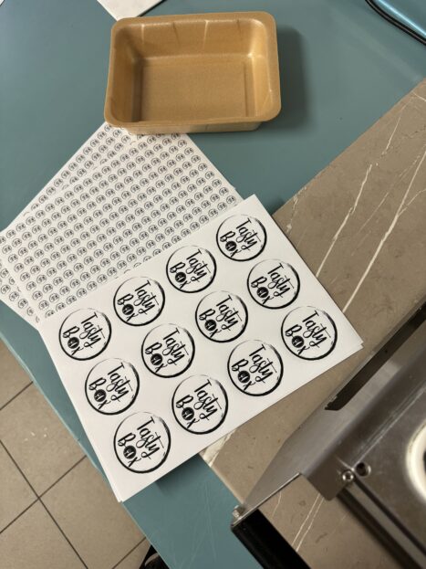 Low carb krabičky se poté zataví fólií, polepí etiketou s nápisem dne, data spotřeby a ukládají se do papírových tašek.