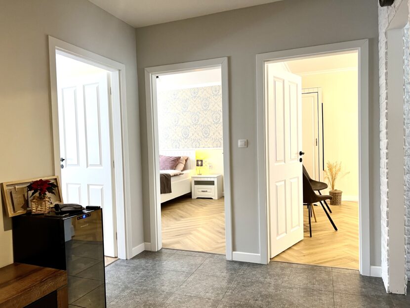Tento velmi prostorný apartmán v Mikulově nabízí celkem 3 ložnice, celková kapacita je 6 osob. Pokud se tu tedy ubytujete například ve skupině přátel, můžete mít i vlastní soukromí v ložnici.