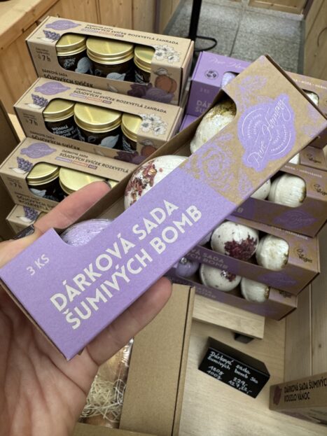 …potěší ovšem i přírodní tuhé mýdlo, bomba do koupele… zkrátka, maličkost, která nestojí moc.