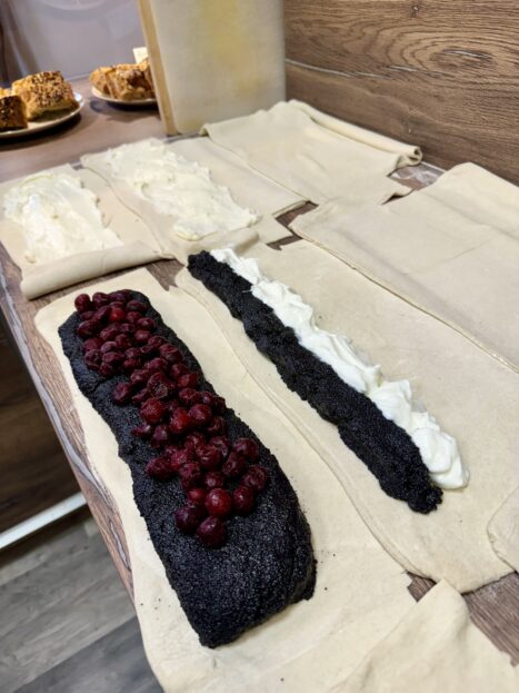 Stejně tak i náplně si zde chystají sami, z těch nejlepších surovin. Ovoce berou od regionálních dodavatelů a pěstitelů, sezónně i ze Zelného trhu, používají zde pouze český mák, který si i sami melou…